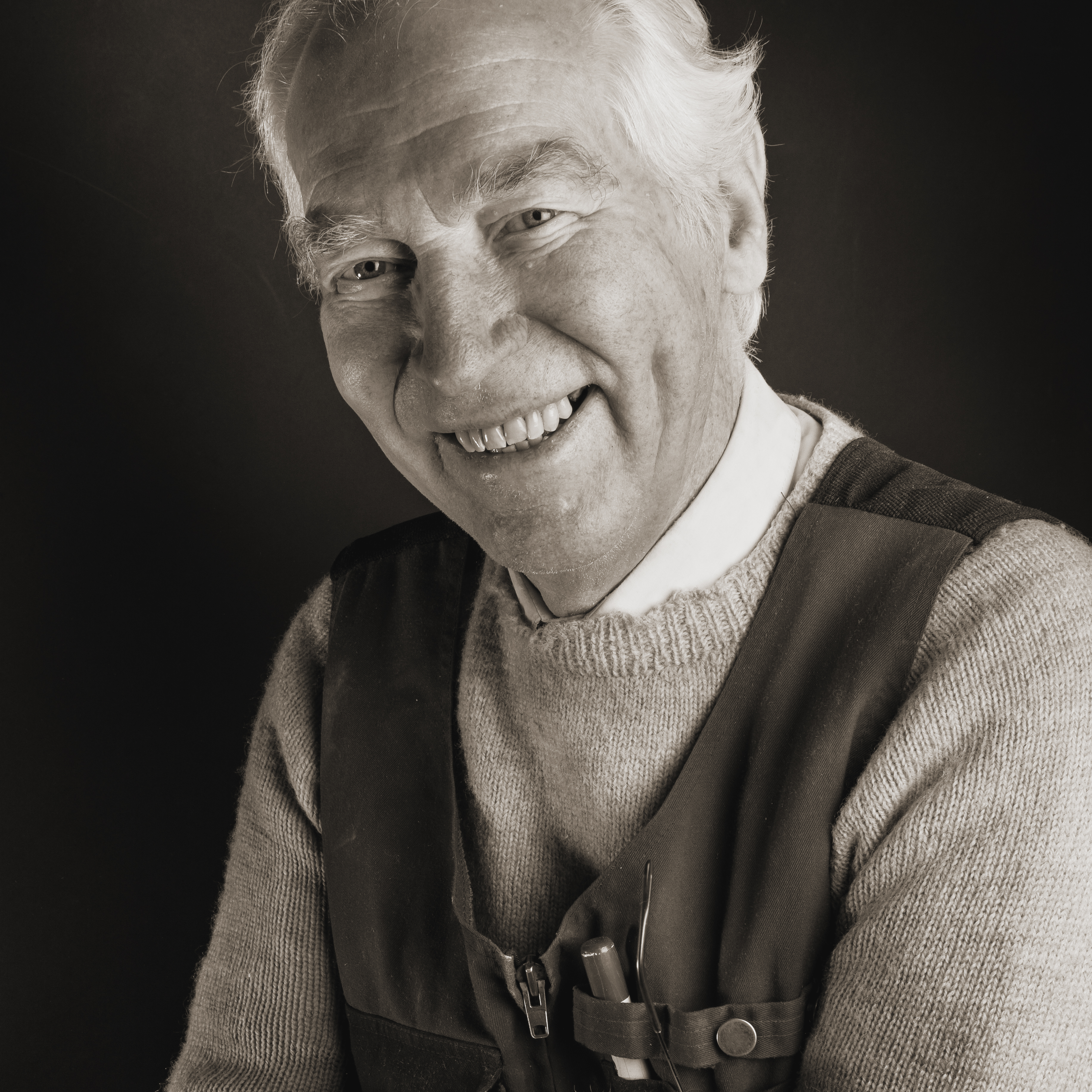Need kaks portreed sündisid väga juhuslikult – mul oli vaja pildistada ühe logo jaoks roosiõit. Panin oma väikeses kodustuudios valgused paika ning avastasin, et küll on tüütu seda lille seal hoida ja samal ajal pildistada. Kutsusin siis naabri appi, töötas teine just pööningul. Naerda sai kõvasti, kui ta kuulis, et peab ainult lille hoidma ning seda suurem oli hämming, kui ta sai teada, et ostsingi need lilled ainult pildistamiseks. Kuid lill sai hoitud hästi ja mulle meeldis see valgus ja see kuidas ta seal istus… tegin ruttu paar võtet ja arvan, et tabasin tema olemuse. Ja just selline ta ongi, alati valge triiksärgiga insener, Mati Krivel, minu isa.