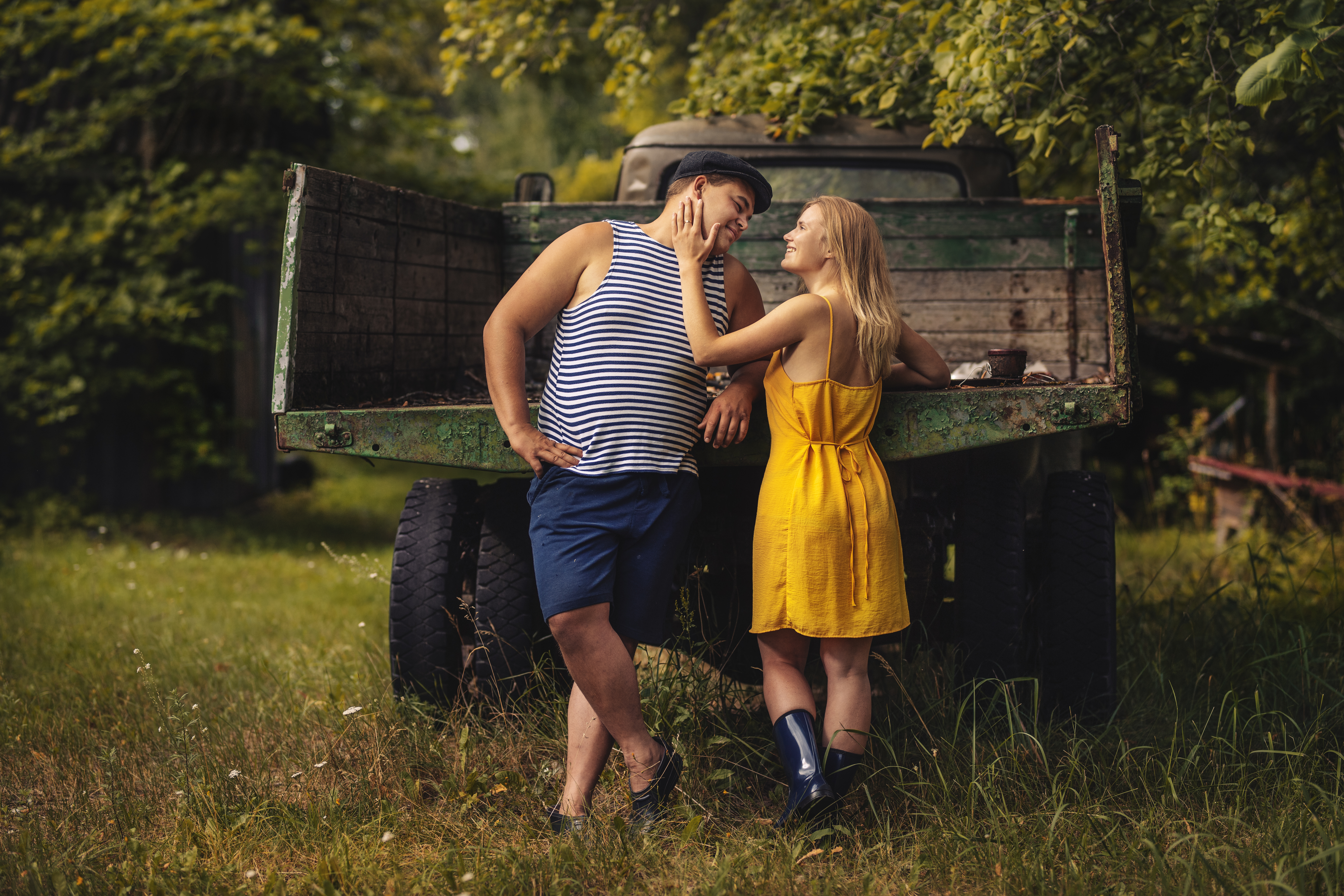 Anna ja Kristo pildistus leidis aset Põlvamaal, pealtnäha tavalises hoovis. Minu jaoks oli see hoov nagu unistuste stuudio – kõik vajaminev oli olemas. Erinevad taustad, õhku, aksessuaare, lisaks suurepärasele atmosfäärile. Noored olid leidnud selga vanu rõivaid, mis nagu valatult sobisid meie võttepaigaga. Ja nii see sessioon sündiski – liikusime õue peal ringi ja korjasime kokku kõik vajaminevad kaadrid. Pildistasime umbes poolteist tundi ning kõik pildid on tehtud kasutades stuudiovälke, et saaks valguse ja varju täpselt selliseks nagu soovisin.